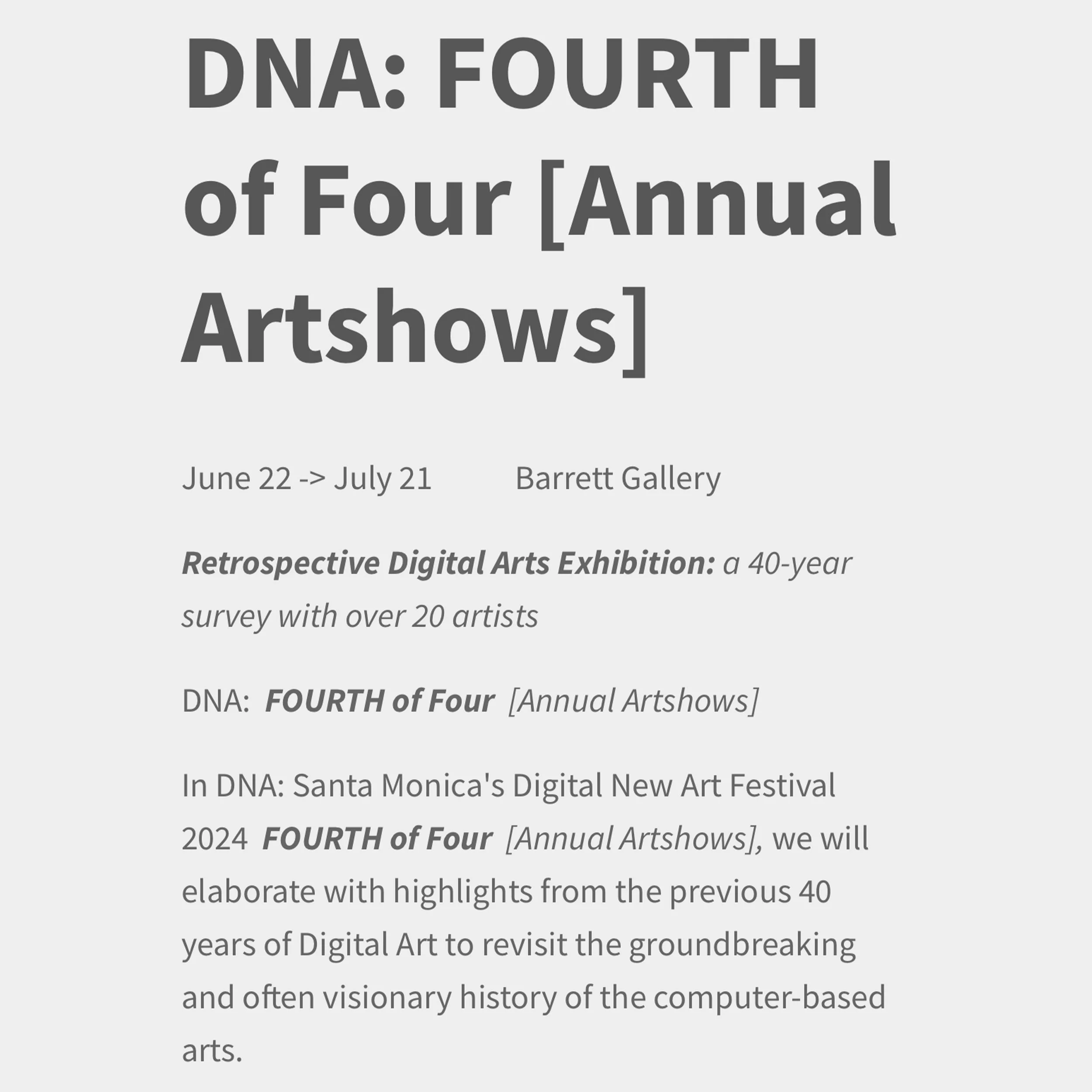 Galavis first show was a group show at Resource Group Show, curated by Paris Chong (Leica Gallery LA, FAB studio LA/Silent Gallery) that ran from October/14 through April/15 in Los Angeles.